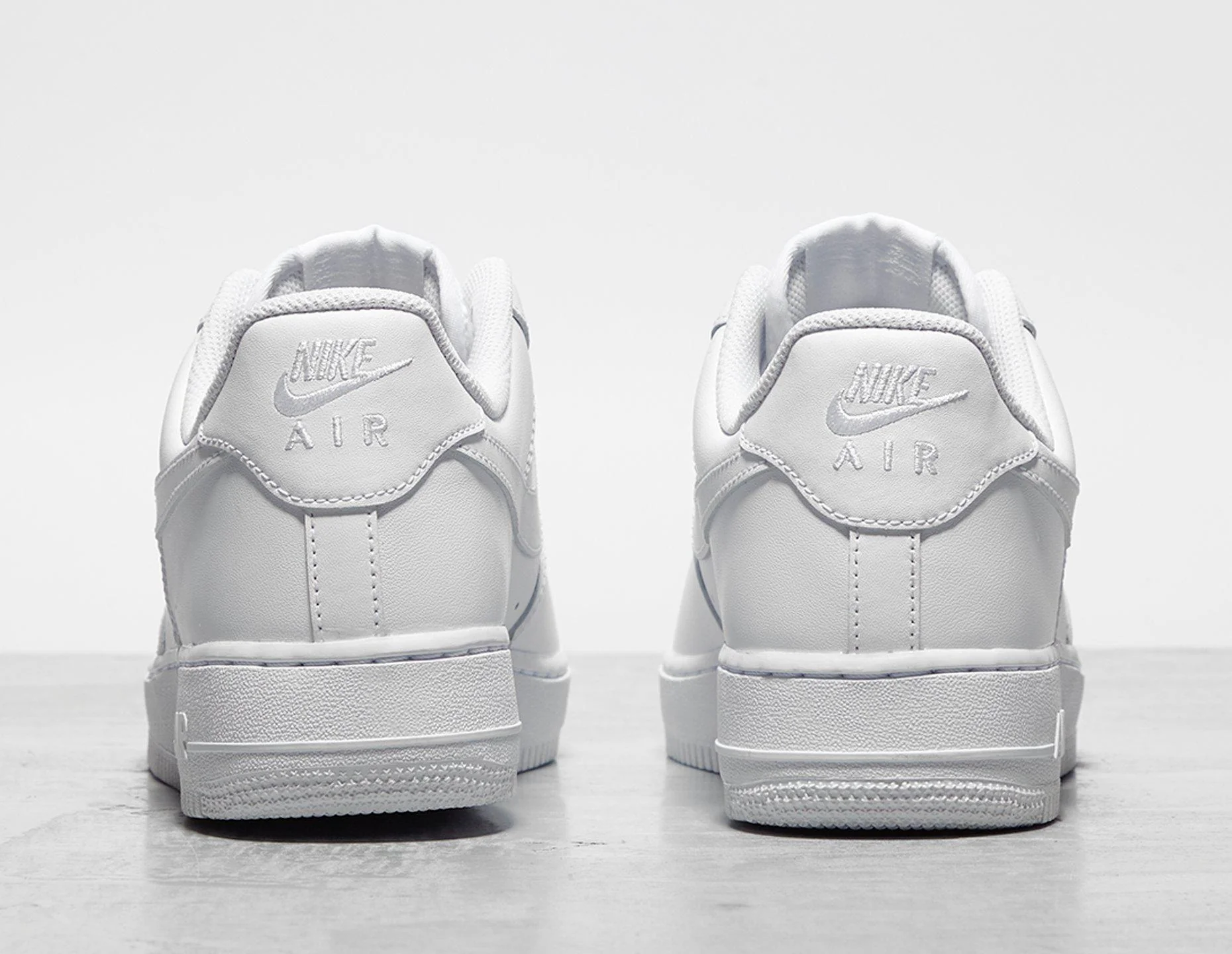 The first Air Force 1s were produced in 1982 and were the first basketball shoe to use the Nike Air bubble. Little has been changed, taken away or added to the AF1 since its first release even though over 1,700 colourways have been produced and Nike restrict the sale of the shoe to selected retailers around the world. This clean white leather version features the usual perf toe and wrap around Swoosh branding, a mesh lining and further Nike branding on the tongue and midsole plus a metal AF1 lace jewel. | 315122-111