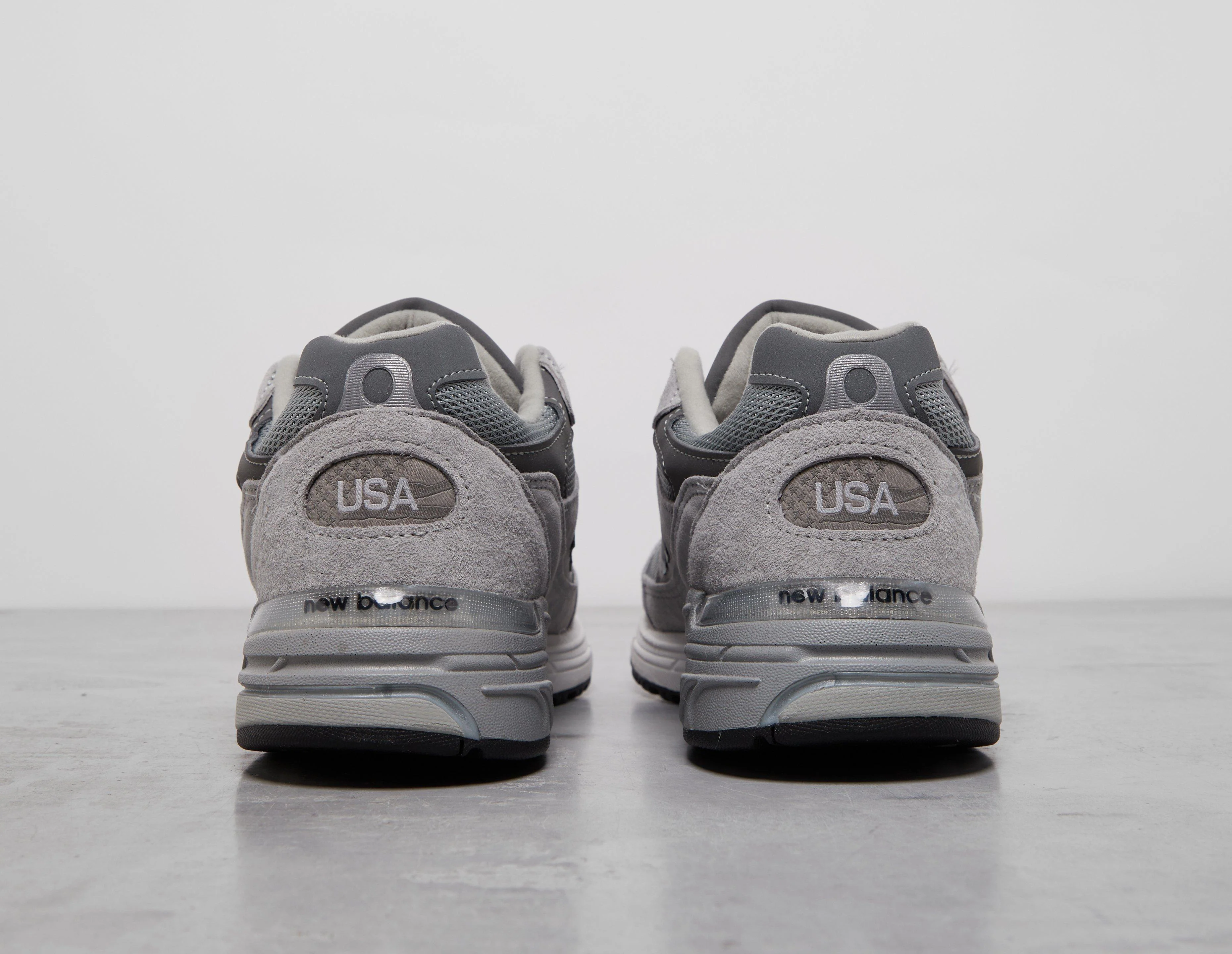An archetypal New Balance silhouette, the New Balance 993 Made in USA returns with a soft grey re-do. Plush suede pairs with mesh on the upper, ensuring breathability and flexible structure. Built to an impeccable standard, the 993 also features an encased ABZORB unit to cushion every step and optimise shock-buffering. Rubber covers the outsole for a grippy tread, and 'N' branding signals heritage for a final finishing touch. | MR993GL