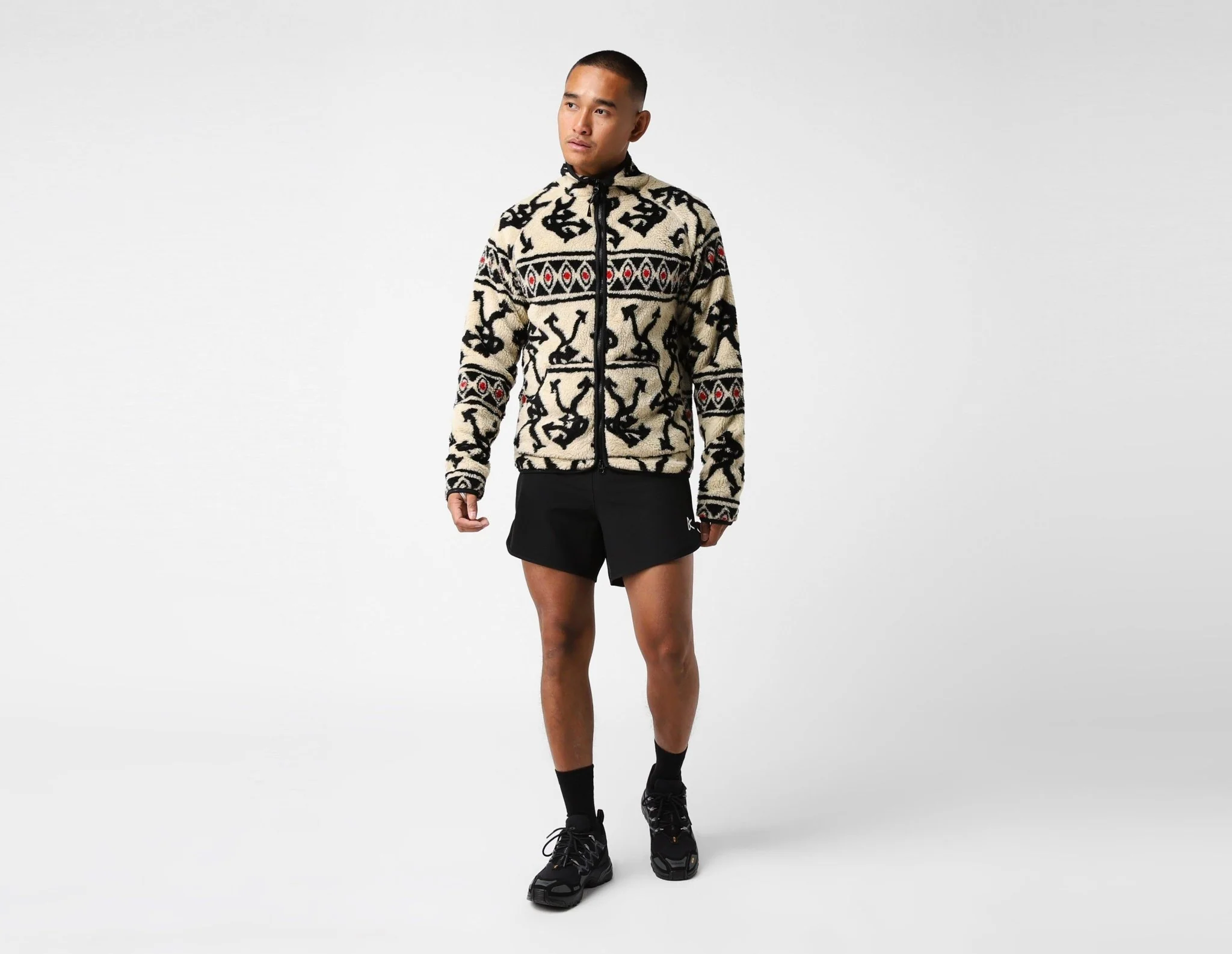 LA-based running brand District Vision present its function-first Greg Cabin Fleece that's made from recycled high-pile fleece that keeps in the warmth. Fitted with a two-way zipper and elastic trims, it's complete with a hidden chest pocket. | our model is 6'0" and wears a size medium