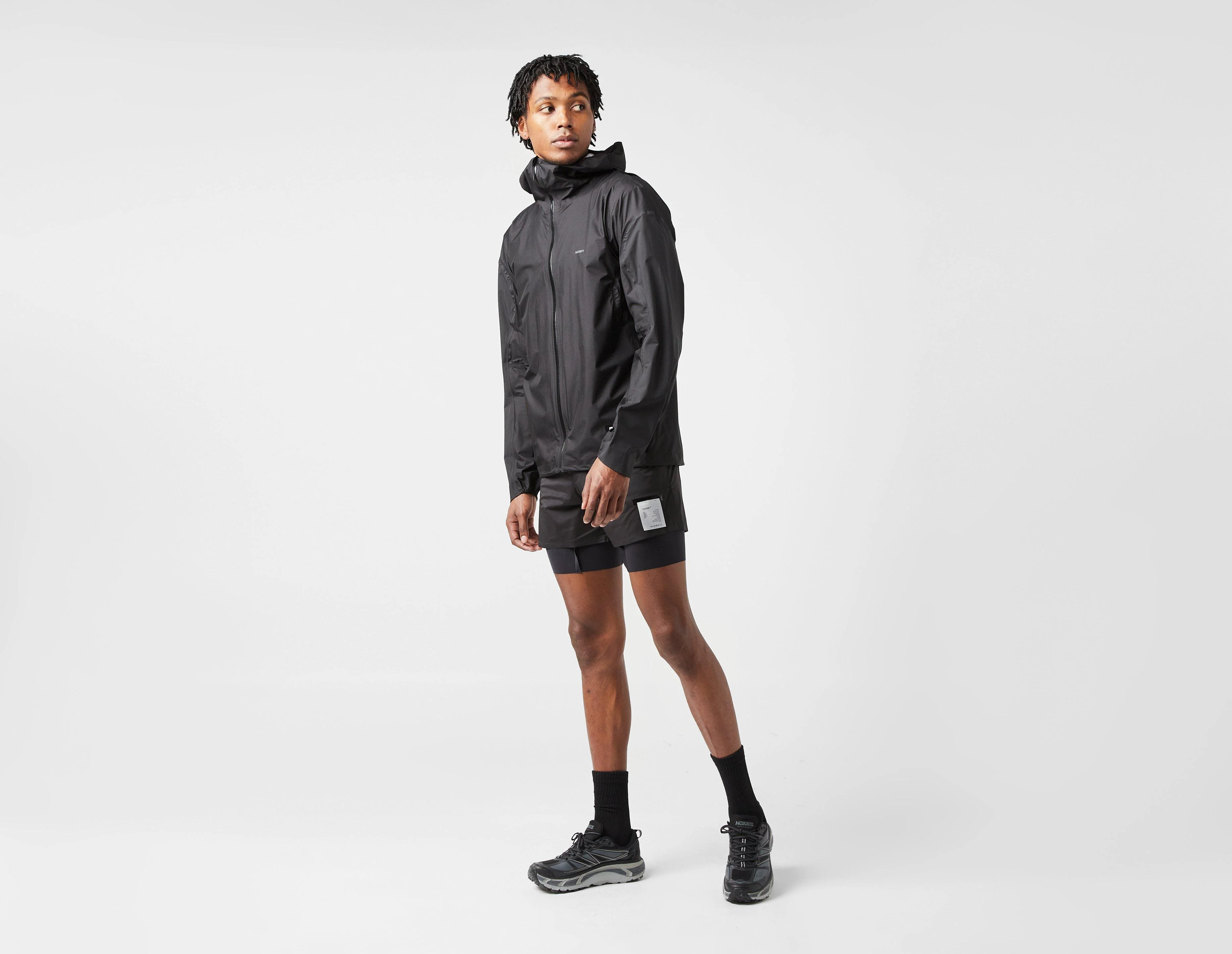 Waterproof, packable and breathable, Satisfy's Pertex 3L Rain Jacket is engineered to protect you from harsh elements while trail running thanks to its Pertex Shield Air construction. Durability arrives in the form of reinforced sleeves and taped seams while the gusseted back construction delivers a comfortable fit when worn over a hydration vest. An ergonomic storm hood and reflective accents complete the design. | our model is 6'2" and wears a size medium