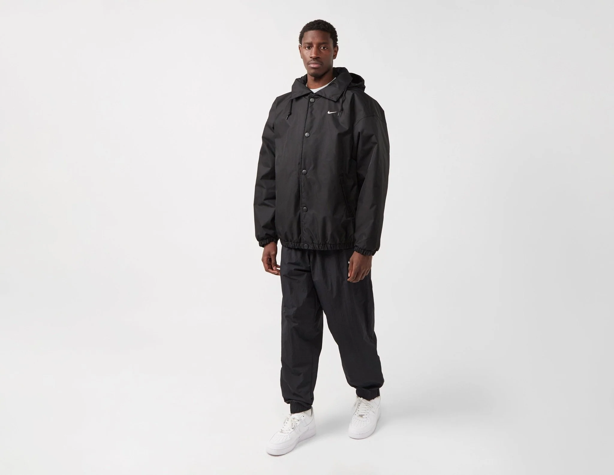 The Premium Essentials Puffer from Nike's NRG collection offers classic sport styling with modern functionality. With a stowable hood and drawstring, plus an adjustable collar, you can wear the look you want - according to the weather. Constructed from water-repellent material and packed with durable insulation, this jacket is finished off by an oversized Swoosh at the back to deliver a retro aesthetic. | FB7852-010 | our model is 6'1" and wears a size medium