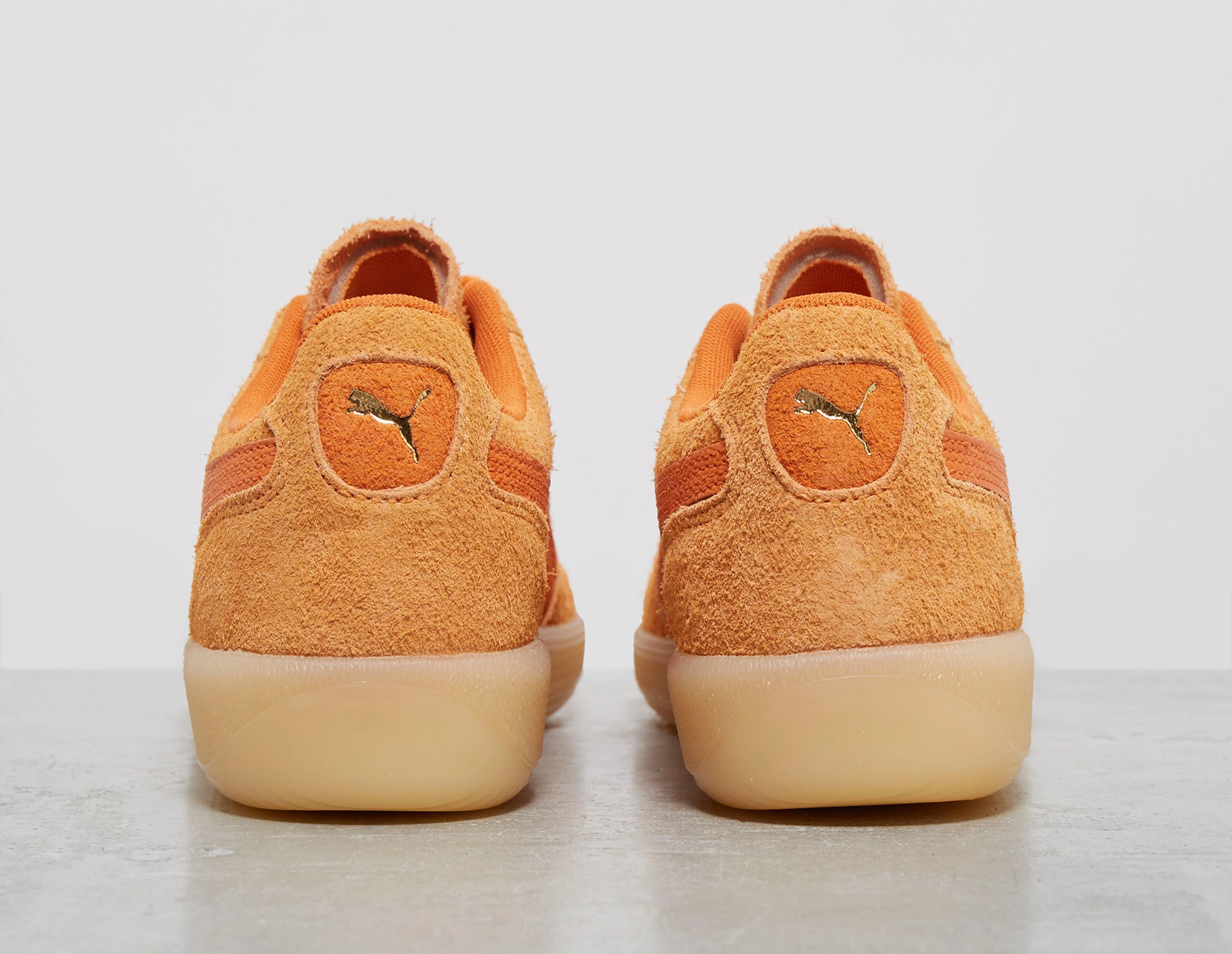 A terrace icon from the archives, the PUMA Palermo is outfitted with hairy uppers with orange coating the majority of the build. Suede overlays are adjoined by tonal Formstrips to the sidewalls. This all rest on a gum rubber sole with branded hits and to finish, we see a gold-tone PUMA Palermo label on the sidewalls. | 397251_04