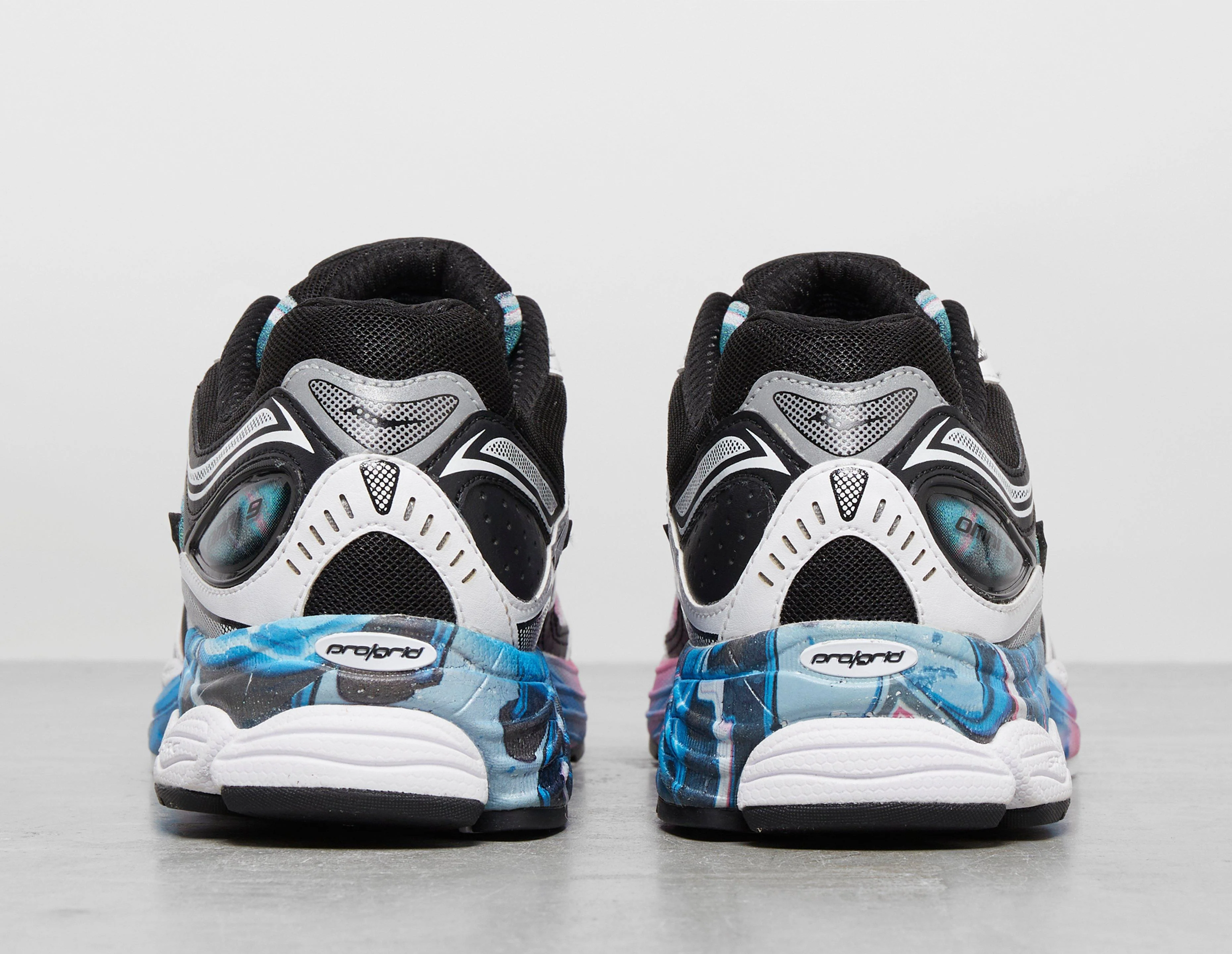Saucony partners with Montreal-based artist, Callen Schaub to present part of the 'Artist Series Pack', which sees the Progrid Omni 9 injected with his swirling world of colour. Schaub puts his stamp on the lifestyle runner with pink and aqua marbling across the synthetic uppers, while strong black detailing incorporates the label's design language. Further down on the EVA midsole, Schaub's swirling melts down for a final burst of colour, while Saucony's TPU shank plate keeps you stable from within, and co-branding confirms the collaboration. | S70815-2