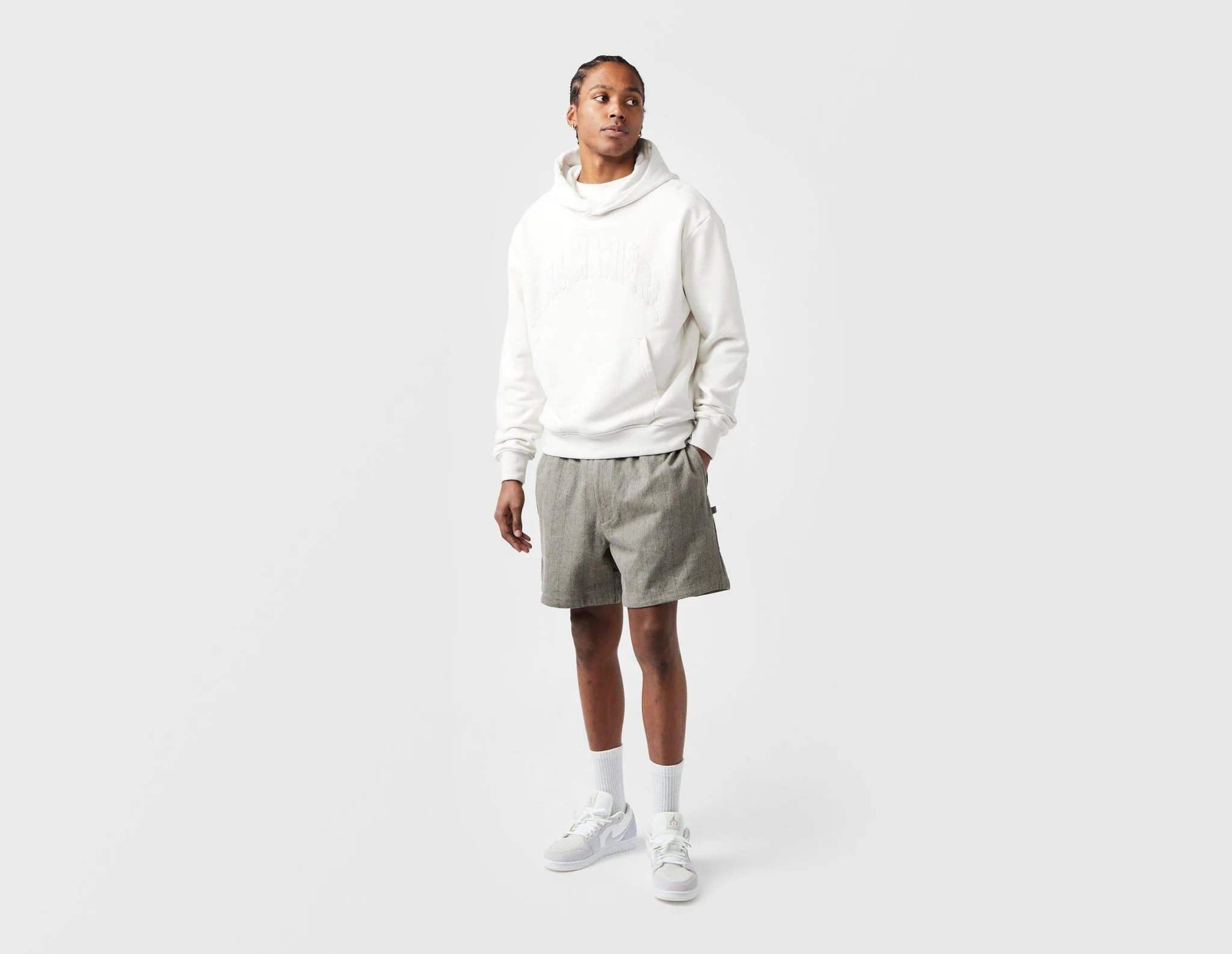 To celebrate 10 years of A Ma Maniére, the label teams up with Jordan Brand to deliver curated apparel essentials that nod to a decade of commitment to luxury. Crafted from heavyweight twill, these structured shorts boast branding subtly woven into the pinstripe design. | HF0536-029 | our model is 6'2" and wears a size medium