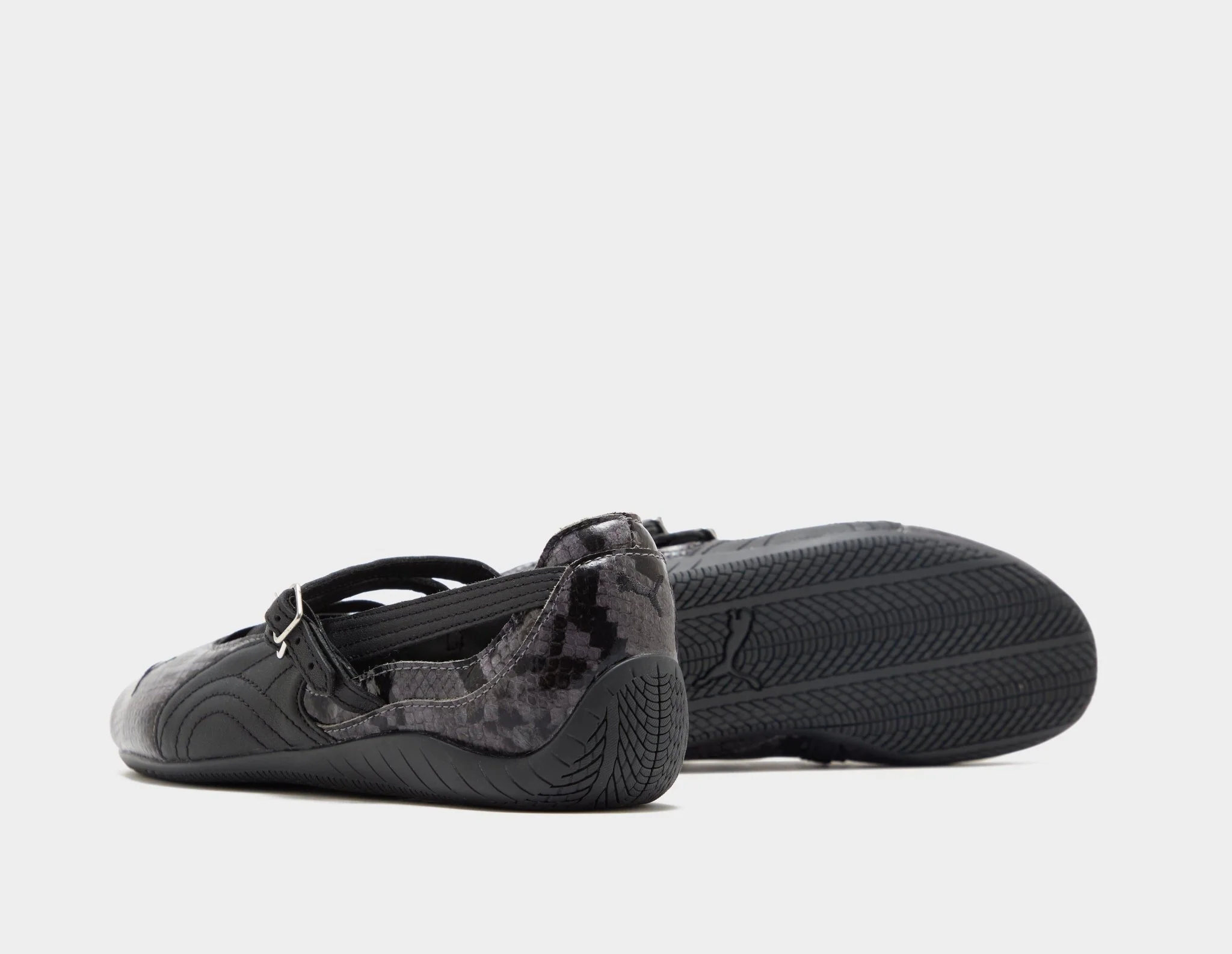 A fusion of track-born heritage and dance, the PUMA Speedcat Ballet is a low-profile design that arrives with a new grey snake print leather outfit. Keeping things secure is dual buckle straps and elastic banding, while a cut-out Formstrip maintains PUMA DNA. Below, a textile OrthoLite sockliner offers comfort while the tire-tread outsole supports your strides. | 405326_02
